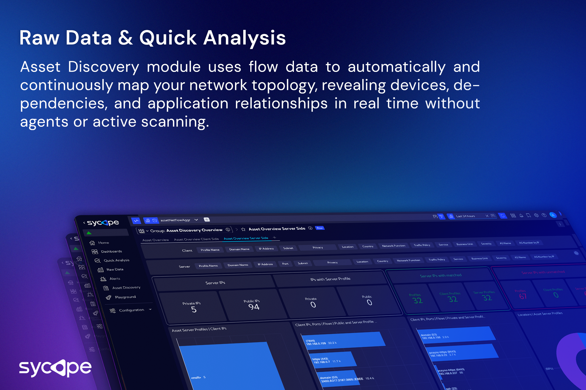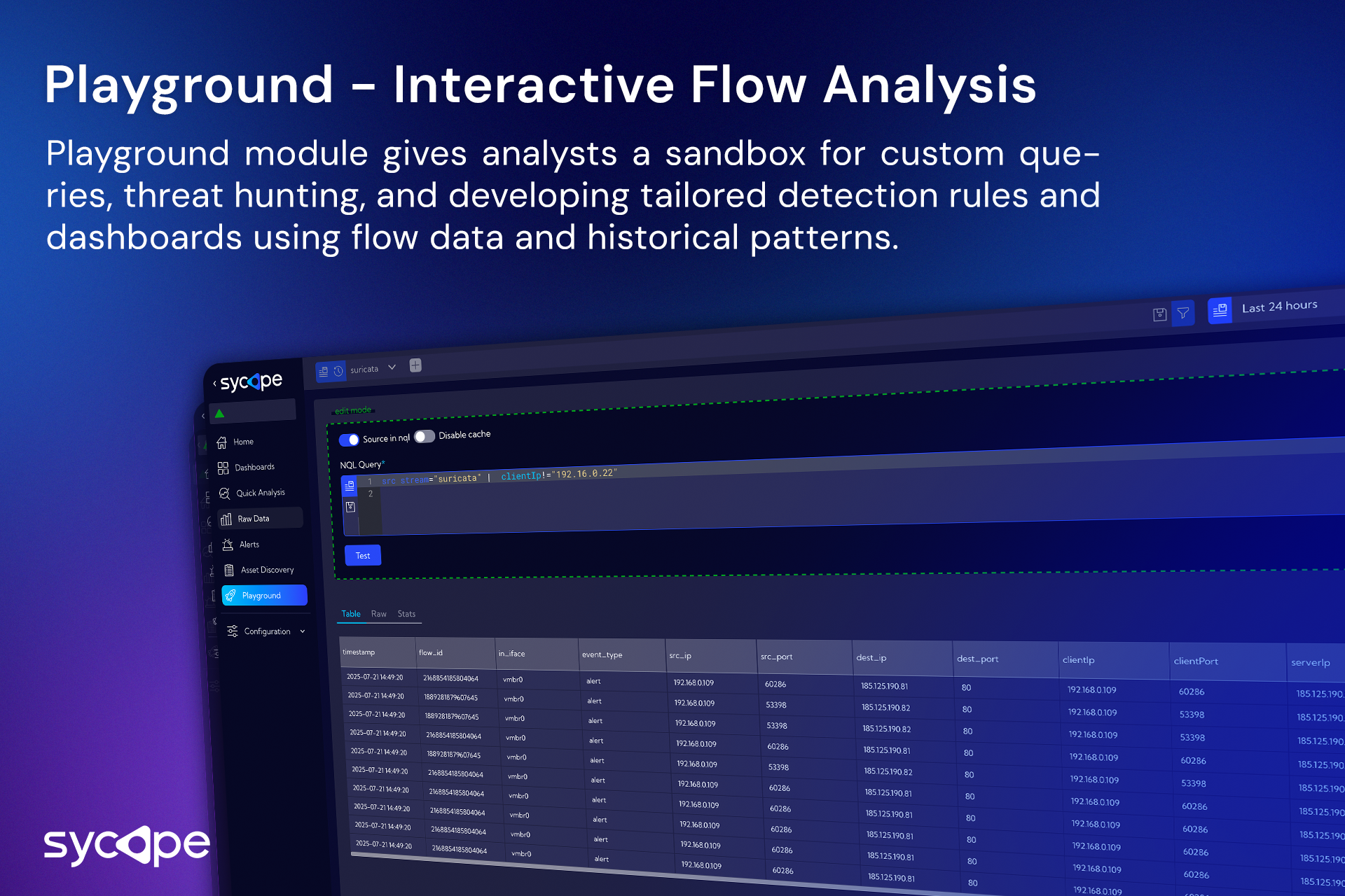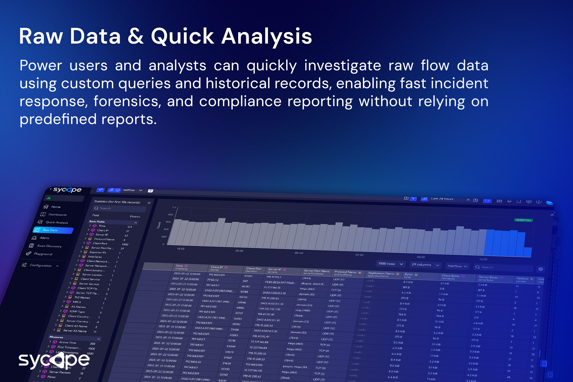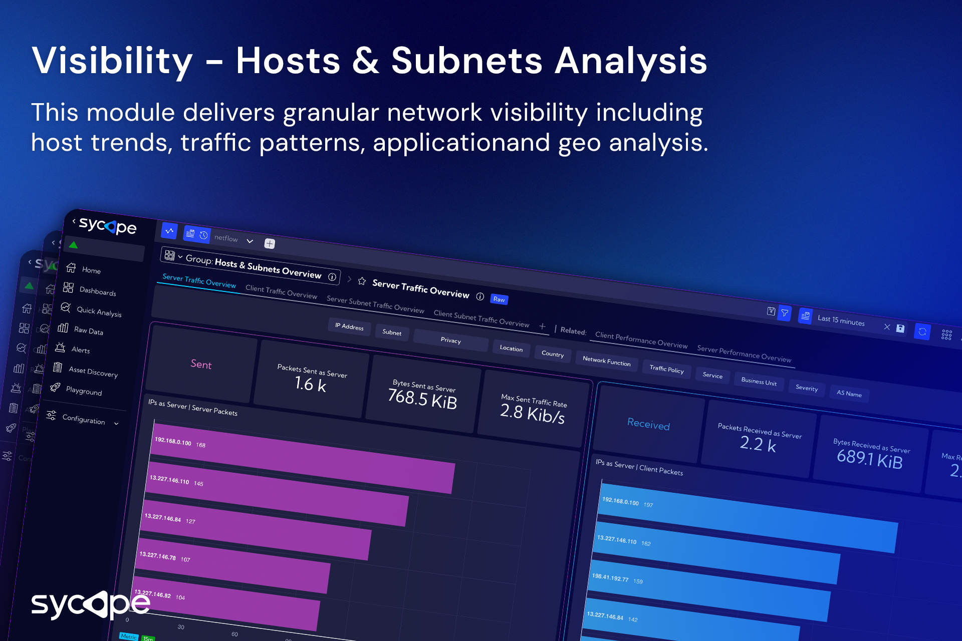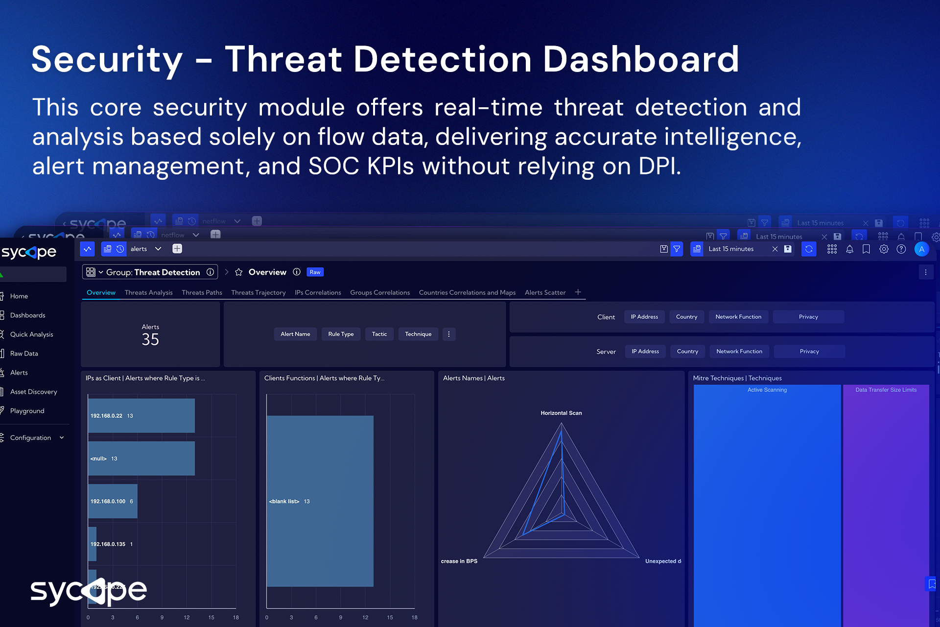 Sycope ir mūsdienīga uzraudzības platforma, kas paredzēta IT, tīkla un drošības komandām. Balstoties uz uzlabotu plūsmas analīzi (tostarp NetFlow, sFlow, IPFIX), “Sycope” sniedz organizācijām iespēju iegūt pilnīgu pārskatu par savu infrastruktūru, ātrāk atklāt draudus, nodrošināt atbilstību dažādiem noteikumiem un optimizēt veiktspēju.